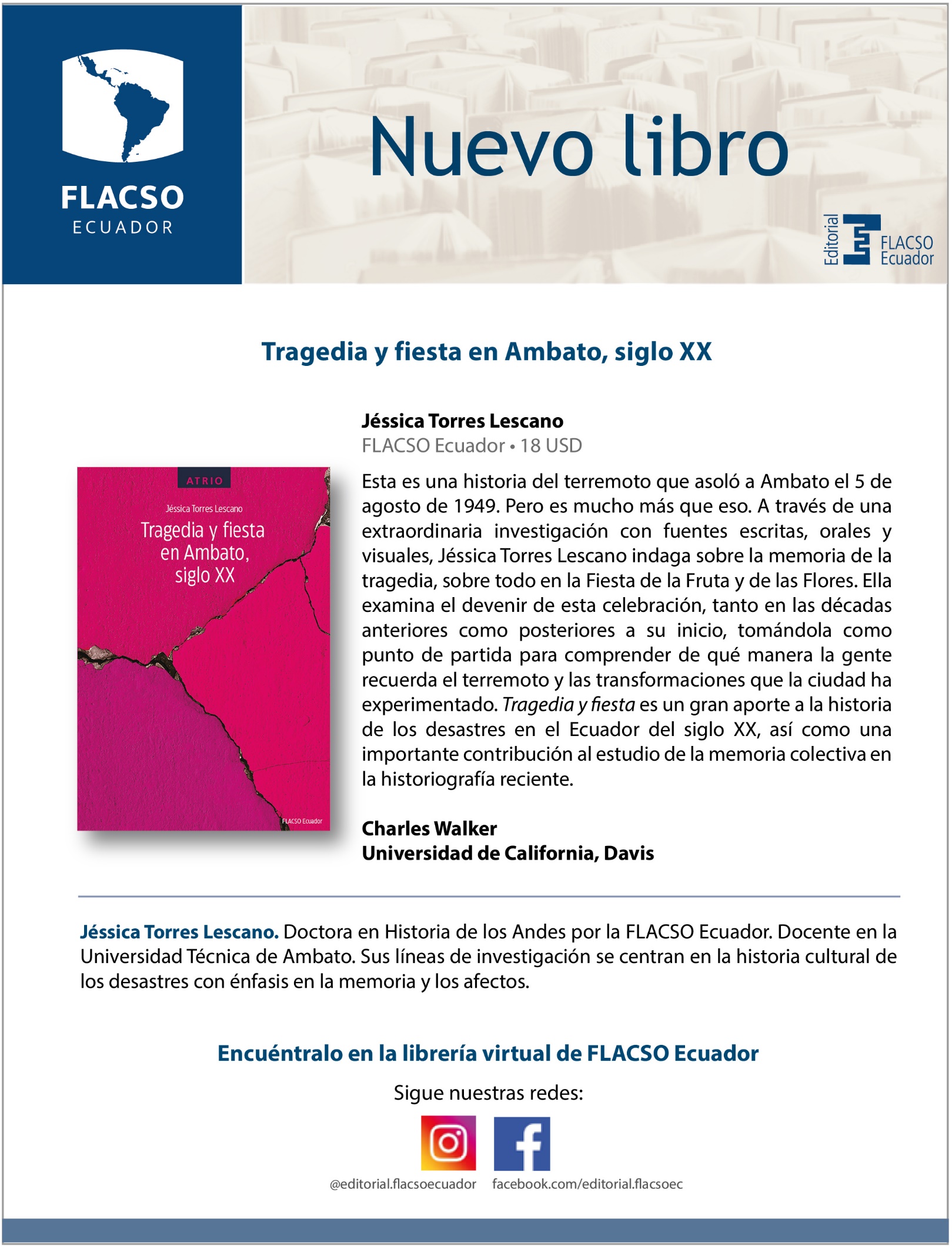 [Lasa] Nuevo libro Tragedia y fiesta en Ambato, siglo XX de Jéssica Torres Lescano