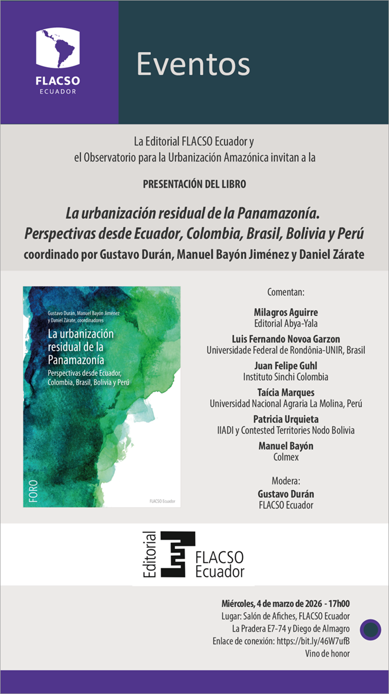 <https://www.flacso.edu.ec/es/evento?id=1588&evento=presentacion_libro:_la_urbanizacion_residual_de_la_panamazonia>
